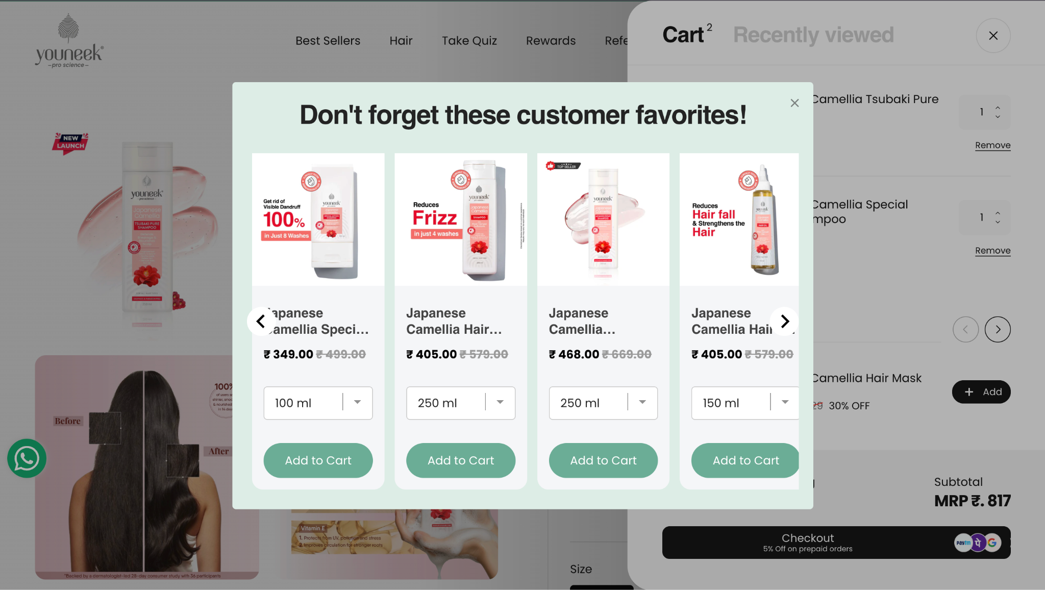 As Youneek Pro Science scaled its ecommerce presence, the brand aimed to increase Average Order Value and revenue per customer while maintaining a clean, education-first shopping experience.